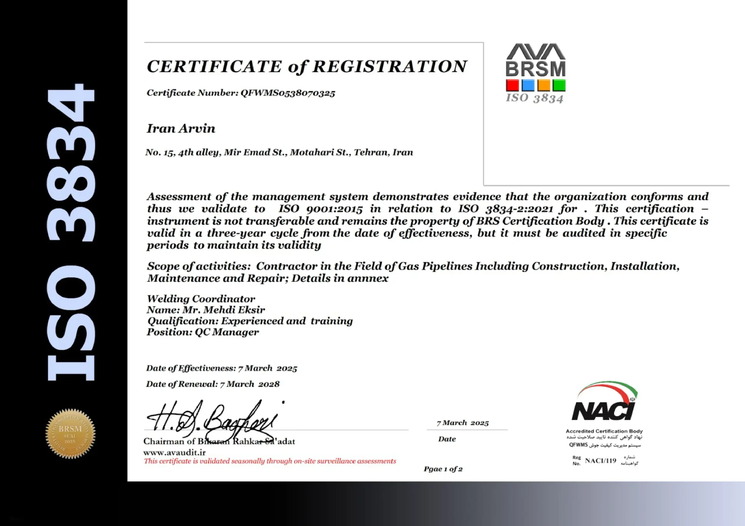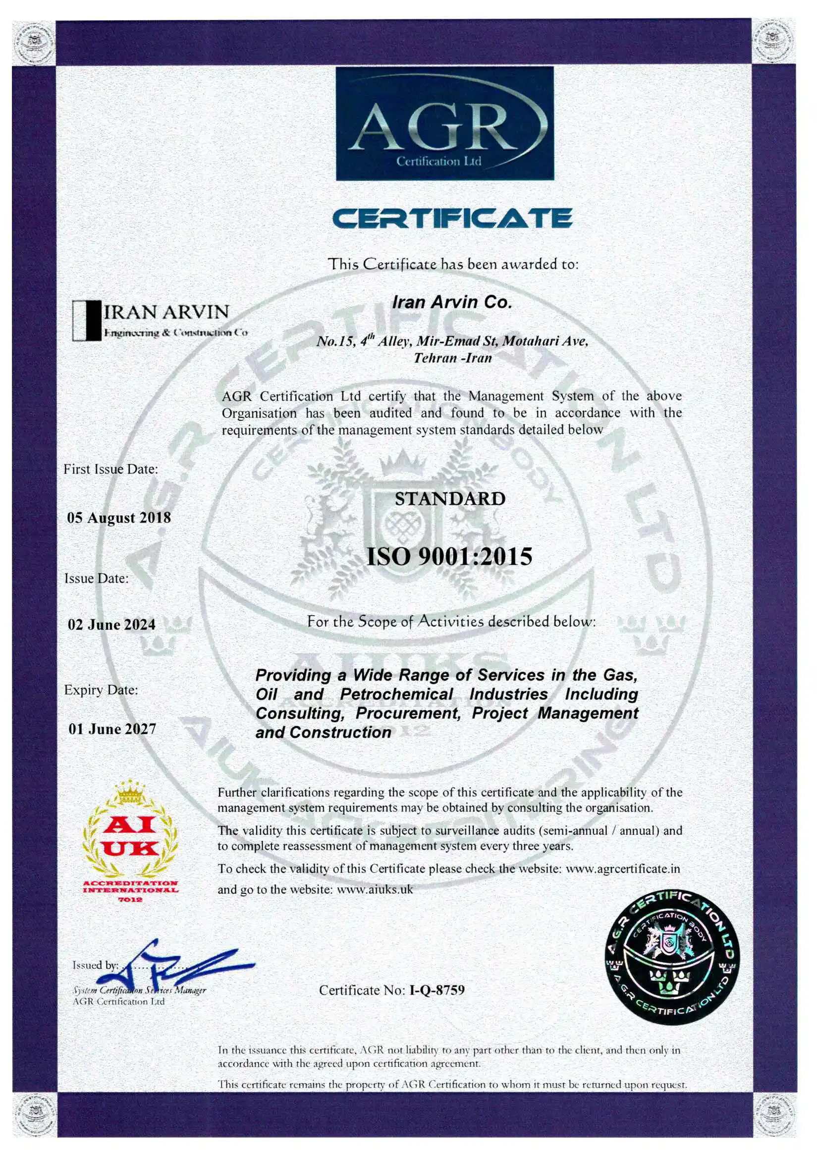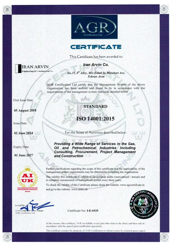 ایران آروین توانسته طی سالهای گذشته افتخارات و استانداردهای بسیار را اخذ نماید که نمایانگر اهداف و چشم انداز های متعالی این شرکت است.