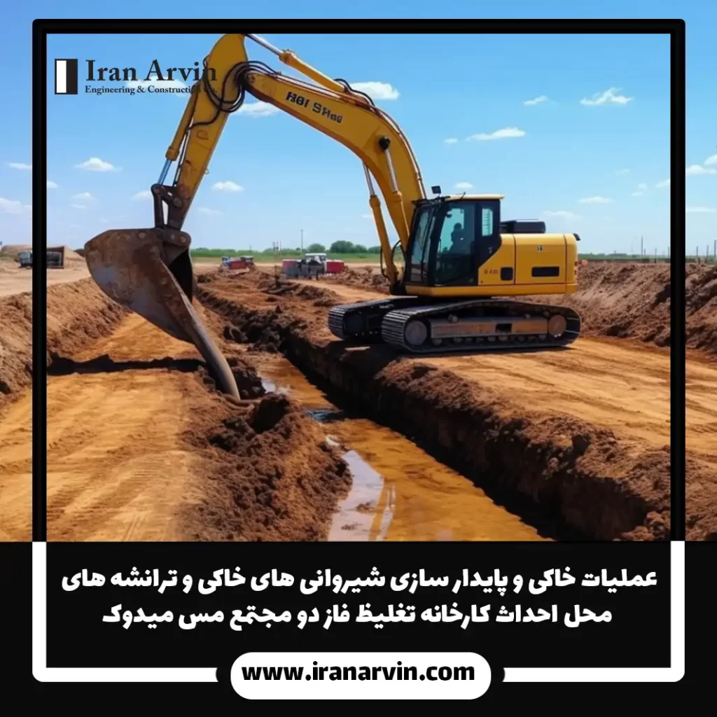 عملیات خاکی و پایدار سازی شیروانی های خاکی و ترانشه های محل احداث کارخانه تغلیظ فاز دو مجتمع مس میدوک